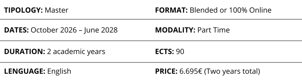 - A level of English equivalent to B2 is required. An official certificate is not mandatory, but students must have sufficient language proficiency to follow the classes and actively participate in the master’s program activities.